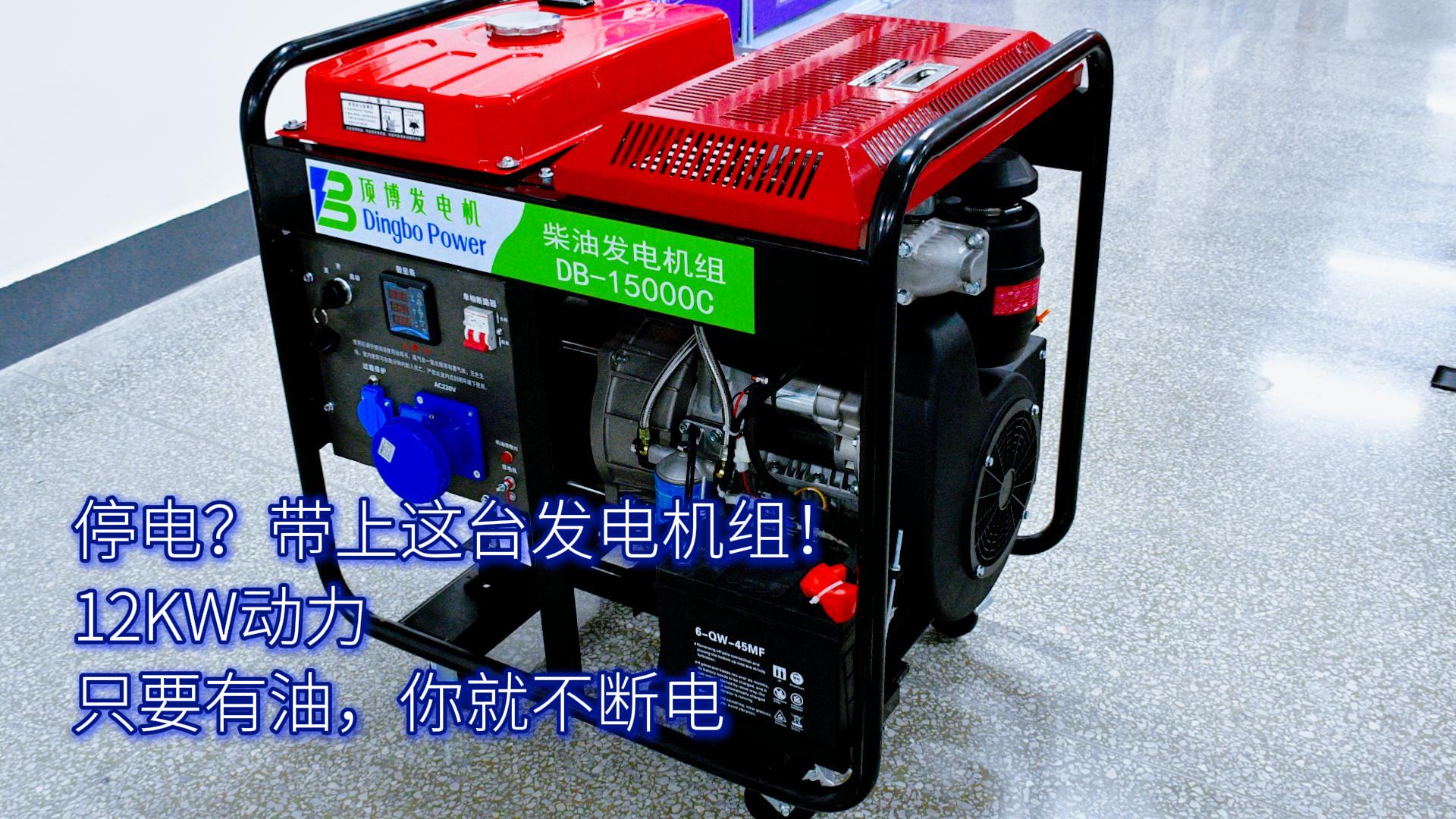 - 停电?带上这台发电机组!12KW动力,只 顶博12KW柴油发电机组,采用加粗型一体式框架,标配万向脚轮,不仅牢固经久耐用,更让移动部署,机组搭